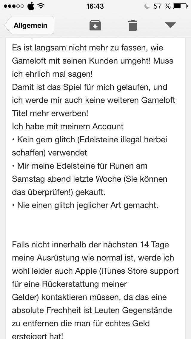 Kein Gameloft Artikel wird nun mehr auf meiner Email Quittung stehen.
