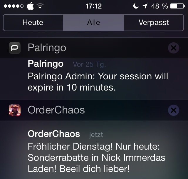Außerdem rufe ich am Wochenende wiedermals Apple an um order & chaos zu melden.
