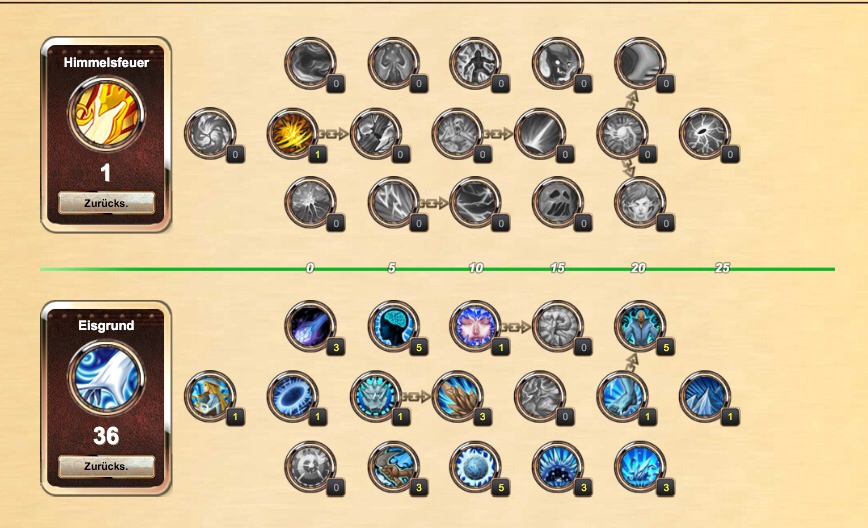 In der o&c Datenbank sind noch die älteren skill Bäume. Wenn man da was skillt kann man das aber auf die jetzigen skill Bäume übertragen. Da jetzt auch noch die Werte geändert wurden und ich momentan keinen Mage besitze, sind mir die Werte nicht bekannt. Da man jetzt aber anscheinen mehr mana bekommt würde ich das als low full skillen um den mana Problemen Herr zu werde. Also 21% mana ist dann doch ziemlich gut.