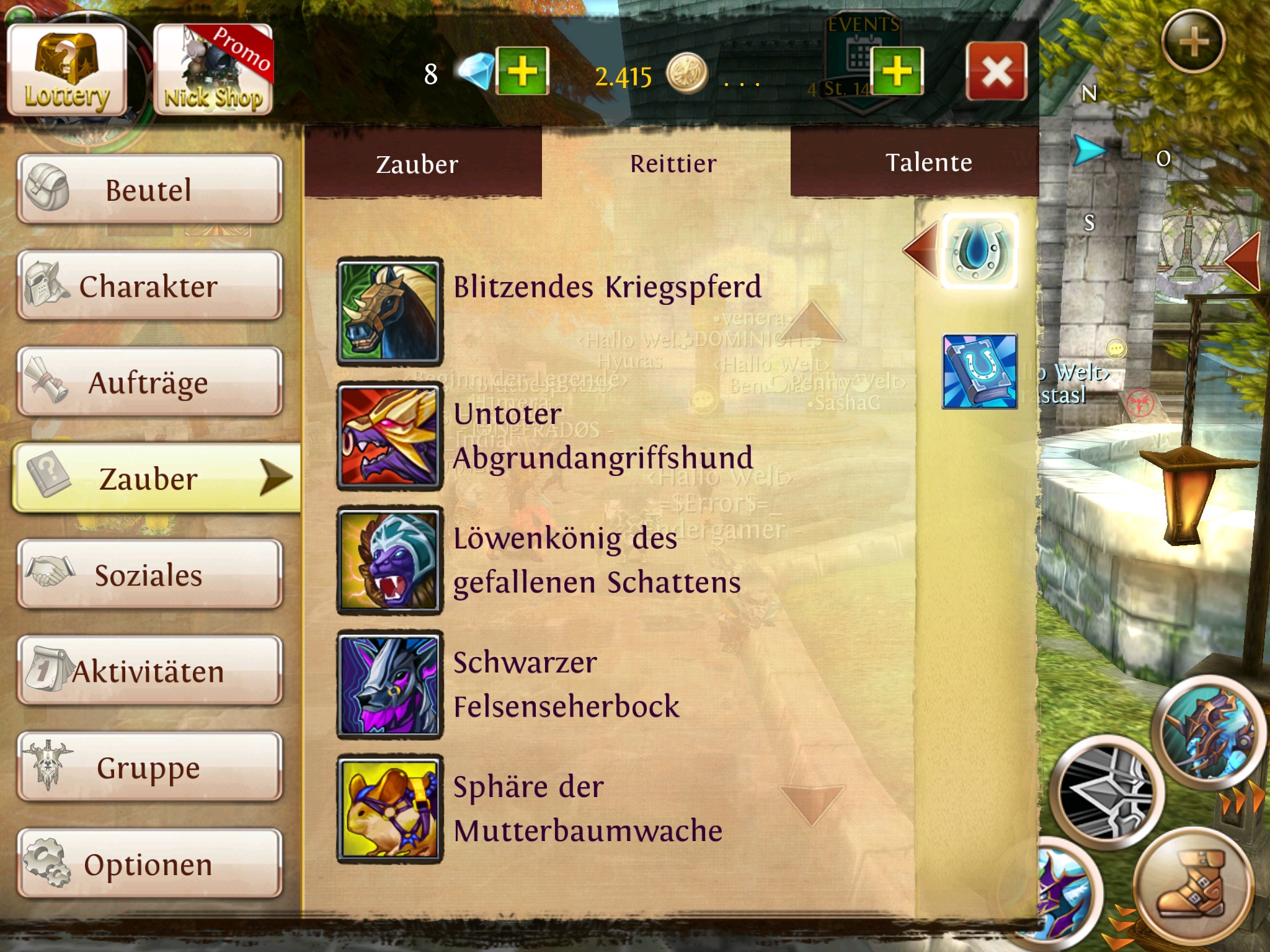 Alle lvl 1+2 Mounts