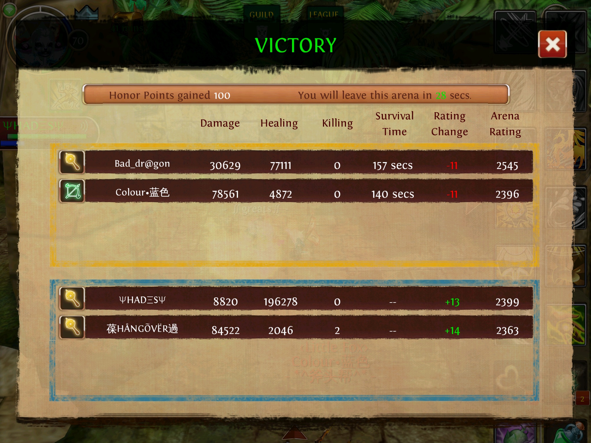 dann kicked er guildies weil sie gegen ihn gewinnen/drawen in pvp, wtf?
