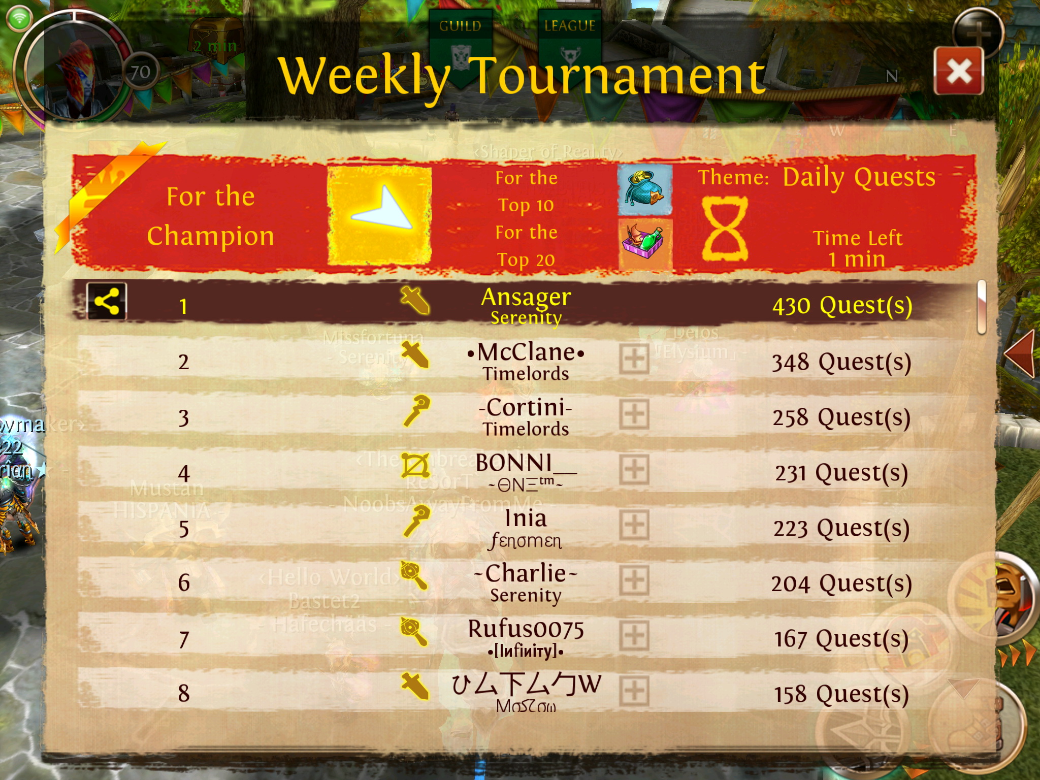 29. Dezember 2014, 17:26 In einem run, 2. mal mage sigil Bilder image.jpg 264,97 kB, 1.136×640, 169 mal angesehen image.jpg 251,08 kB, 1.136×640, 87 mal angesehen MDB Verix: Archer lvl 70 Sirmin: Heal lvl 70