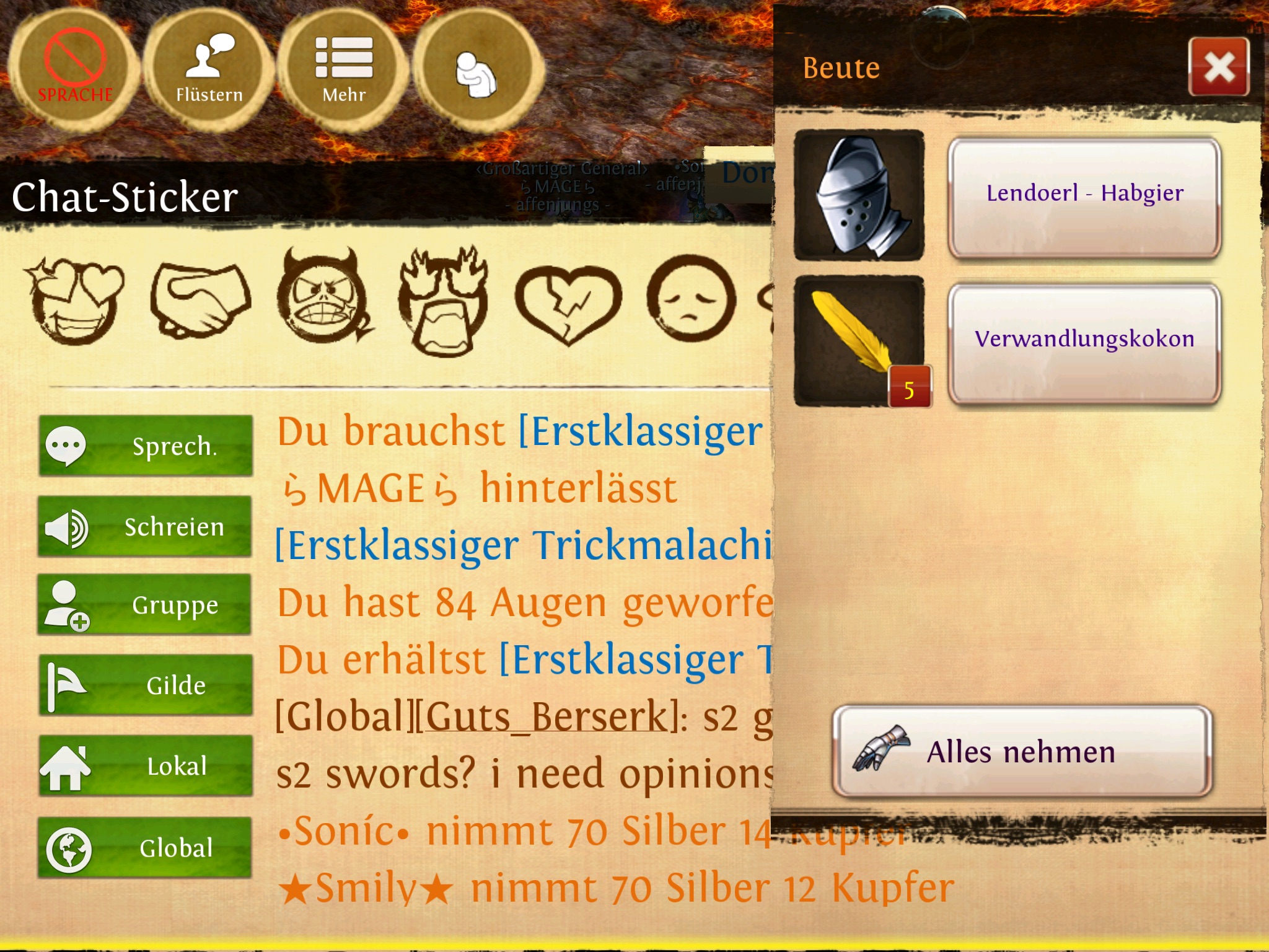 28. Dezember 2014, 18:50 Lvl 2 hammer, leider nur milli und reliquien sigil -.-, erstes mal csl geheilt Bilder image.jpg 240,08 kB, 1.136×640, 97 mal angesehen image.jpg 322,18 kB, 1.136×640, 91 mal angesehen MDB Verix: Archer lvl 70 Sirmin: Heal lvl 70