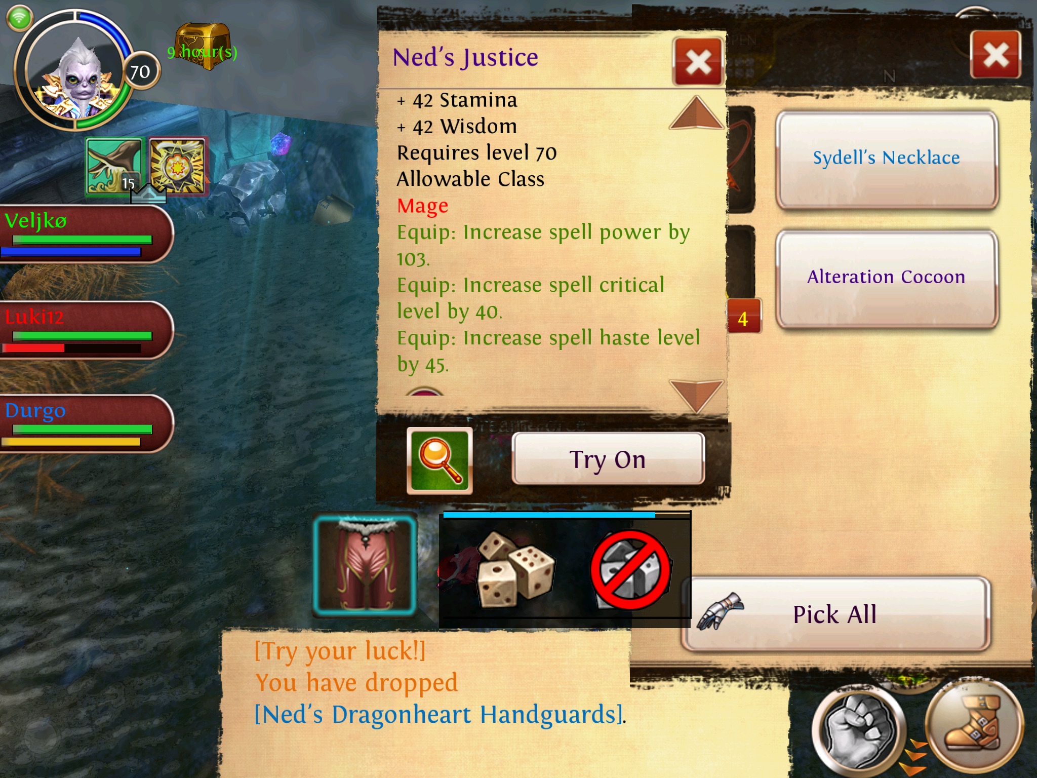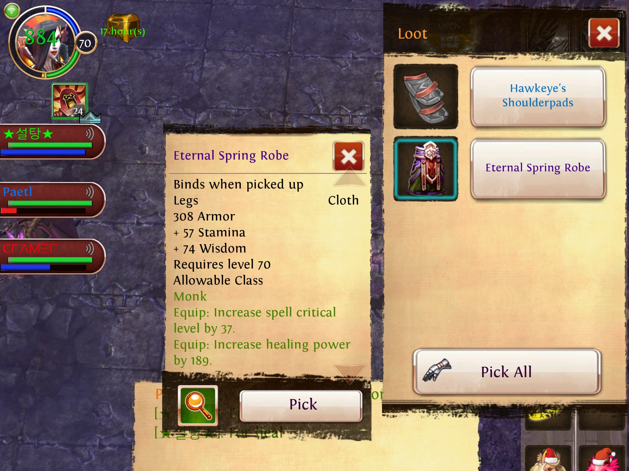- Heal BNL Epic Hose; Cramer wollte sie nicht, da sie kein Set hat. Da ich noch kein T4 Heal Epic hab, hat es mir geschenkt. Vielen Dank!