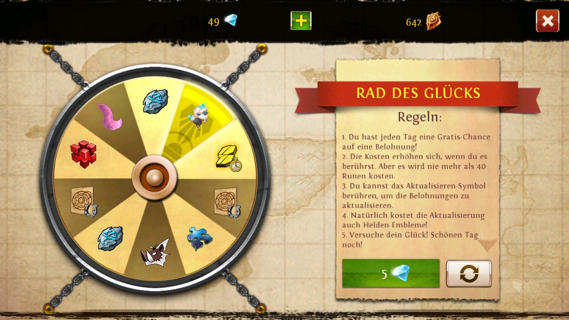 Hey !Habe zwei Fragen an euch!1.:Gibt es urgendeinen Trick um beim Lotto und Glpcksrad bessere Gegenstände zu bekommen?Bekomm bei den Lotto -Kisten zu 80% Glückskreuze und bei mir läuft das Glücksrad dauernd total schnell und bleibt auf einmal bei irgendeinem buff immer stehen.Wöre sehr nett wenn da jmd paar Tipps hat um den loot zu verbessern.2.:Heute hab ich 7 Kombinationen an gems verbessern wollen.Nur schlugen ALLE 7 Kombinationen schief!Was soll ich machen?:(:(:(.Vielen Dank schonmal für eure Tipps!