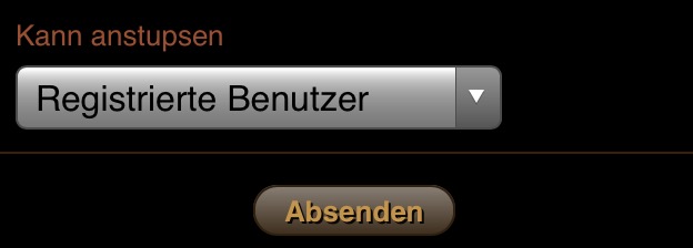 - Benutzer "anstupsen": Um jemanden anzustubsen geht ihr in das Profil der Person die ihr anstupsen wollt und klickt auf den Anstupsbutton. Die angestubste Person erhält dann eine Anstups-Benachrichtigung. Das erneute Anstupsen ist erst dann wieder möglich, wenn die angestupste Person euch zurückgestupst hat