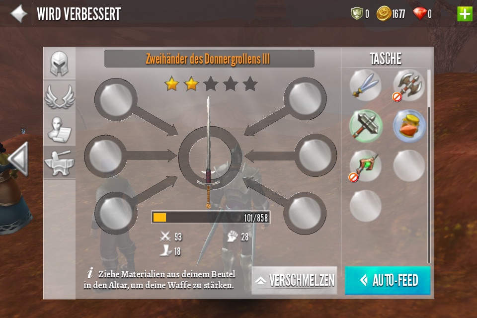 @Lilith Du kannst da nur Erbwaffen drin verbessern, wenn du eine andere Erbwaffe (Die mit dem orangenen Hintergrund) im Beutel hast kannst du die einfach in die Mitte ziehen und die dann verbessern.