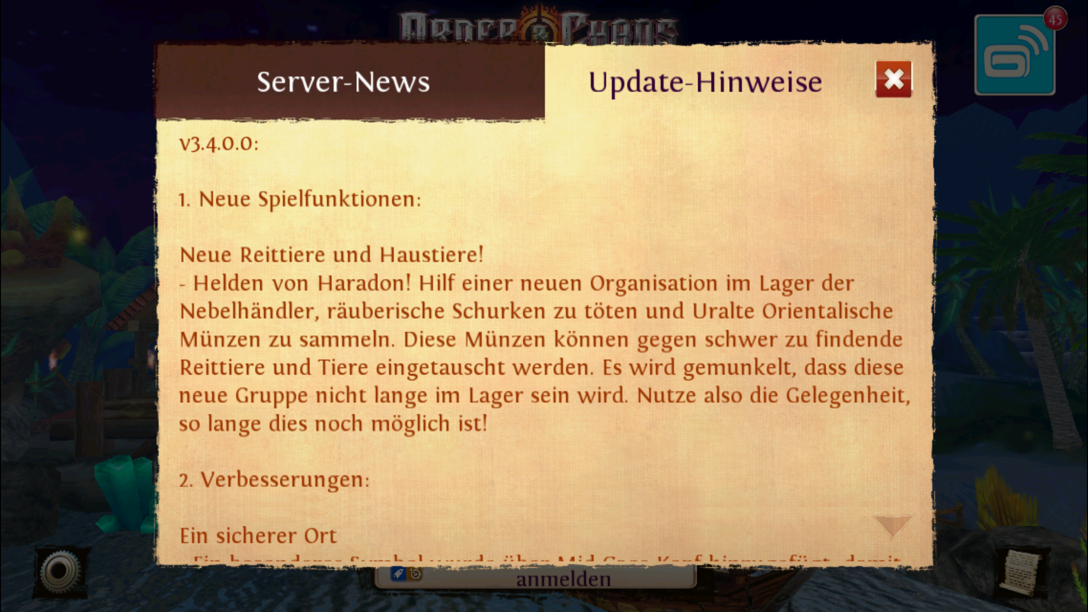 Hey allerseits, nach der heutigen Serverwartung wurde der Patchlog für Version 3.4.0.0 geposted. Dieser Patchlog stimmt mit den jetzigen Funktionen nicht überein. Laut Angabe des Patchlogs wird das Update in 1 Woche sein, da ganz unten zu lesen ist, dass das Ostern-Event vorbei ist und dieses wurde nun genau um 1 Woche verlängert!