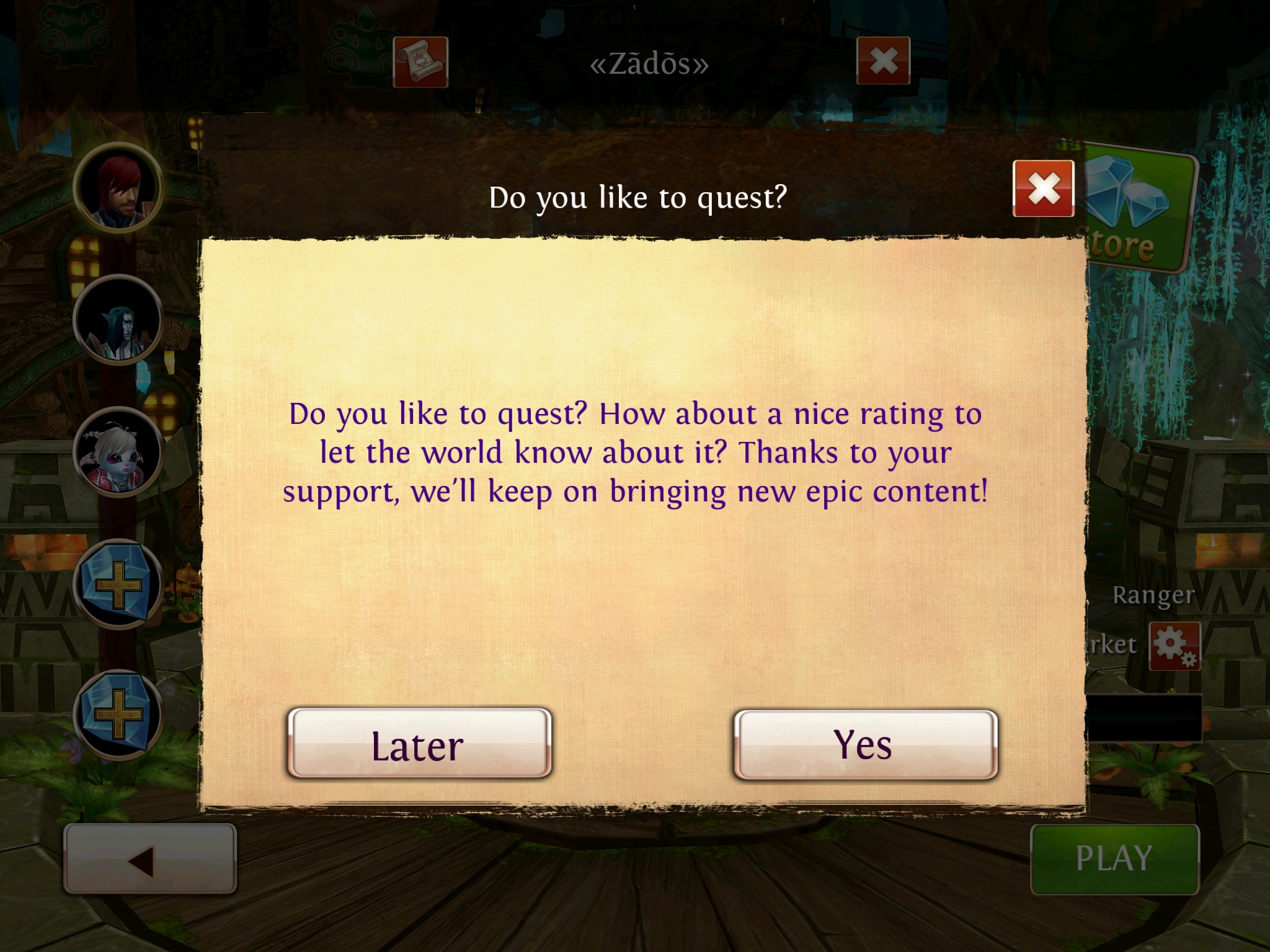 Das ist nur die Frage, ob du das Spiel im iTunes Store bewerten willst«Zãdõs» schrieb: