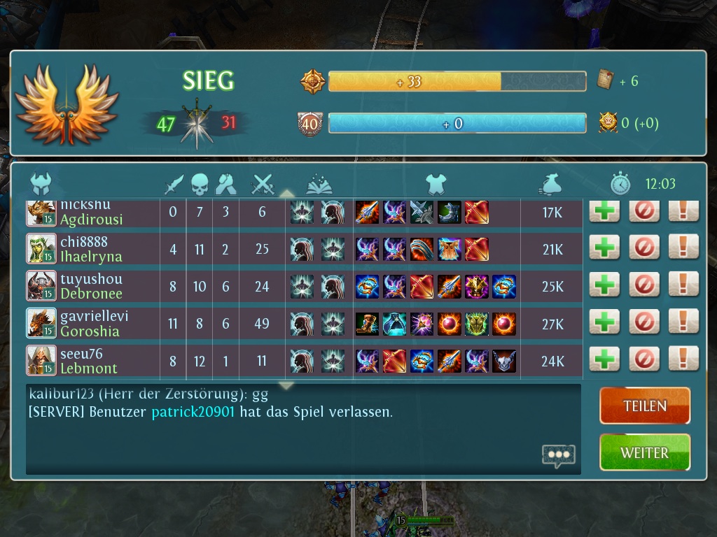 Und Ich hab auch das Gefühl als würde es nur noch Leavers heutzutage geben, wenn man bedenkt das ich meistens 4 vs 5 oder 3 vs 5 spielen muss... .Es gibt nichts, welche mehr verdient in Gefangenschaft gehalten zu werden, als die Zunge! -