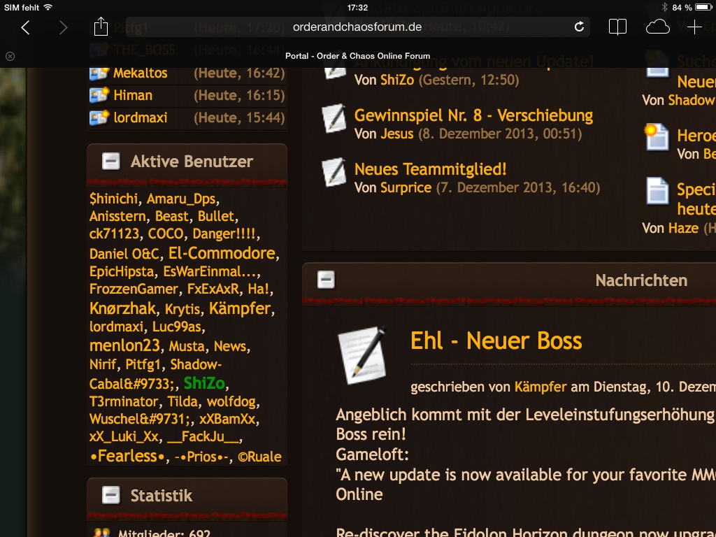 Hi, ich bin ja der 26. member im Forum und damit ein alter brocken xD ich muss sagen : wir haben einen neuen Rekord im Forum . Da das Update jetzt raus ist und Wartung ist sind sehhhhrr viele Nutzer aktiv um sich über das Update auszutauschen! Schaut mal selbst das müsste ein Rekord sein xD